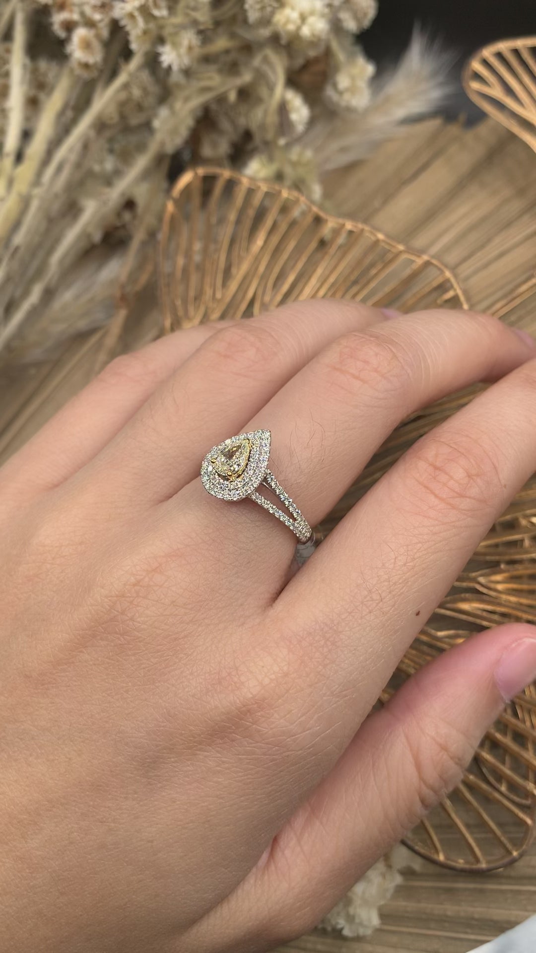 18KWG 3.50GR RD92/0.37CT SIZE 12 with 0.40ct pear yellow diamond.